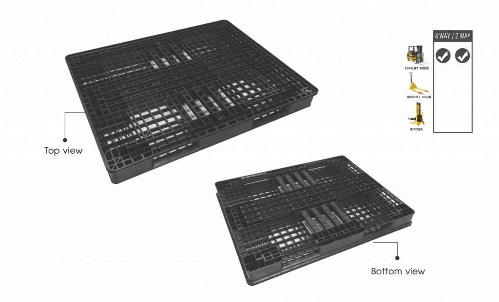 พาเลทพลาสติก พาเลท หน้าเดียว/เข้าได้ 4 ด้าน รับ นน. 4500kg/1200kg CDA1114
